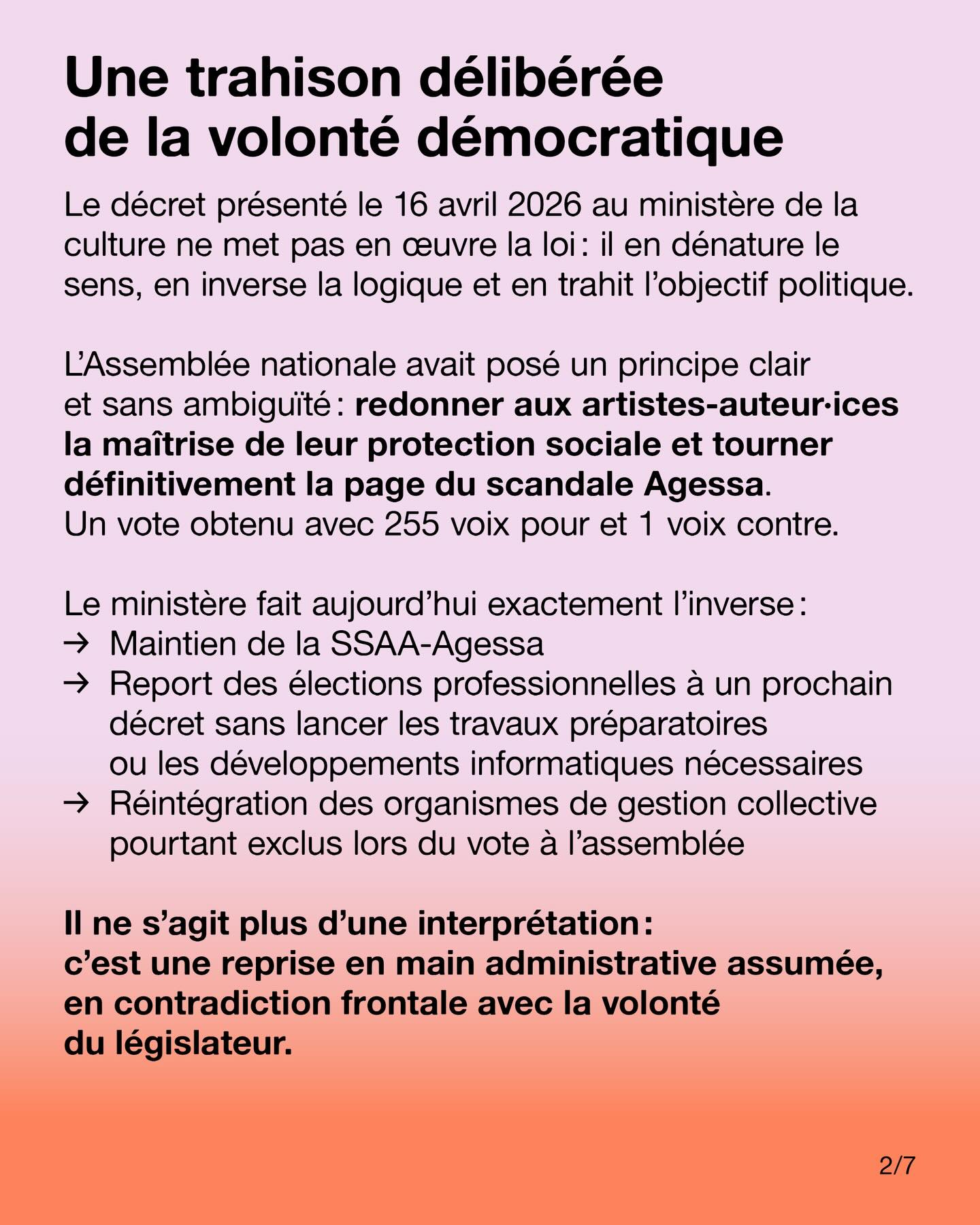 Le décret présenté le 16 avril 2026 au ministère de la Culture ne met pas en œuvre la loi : il en dénature le sens, en inverse la logique et en trahit l’objectif politique.
