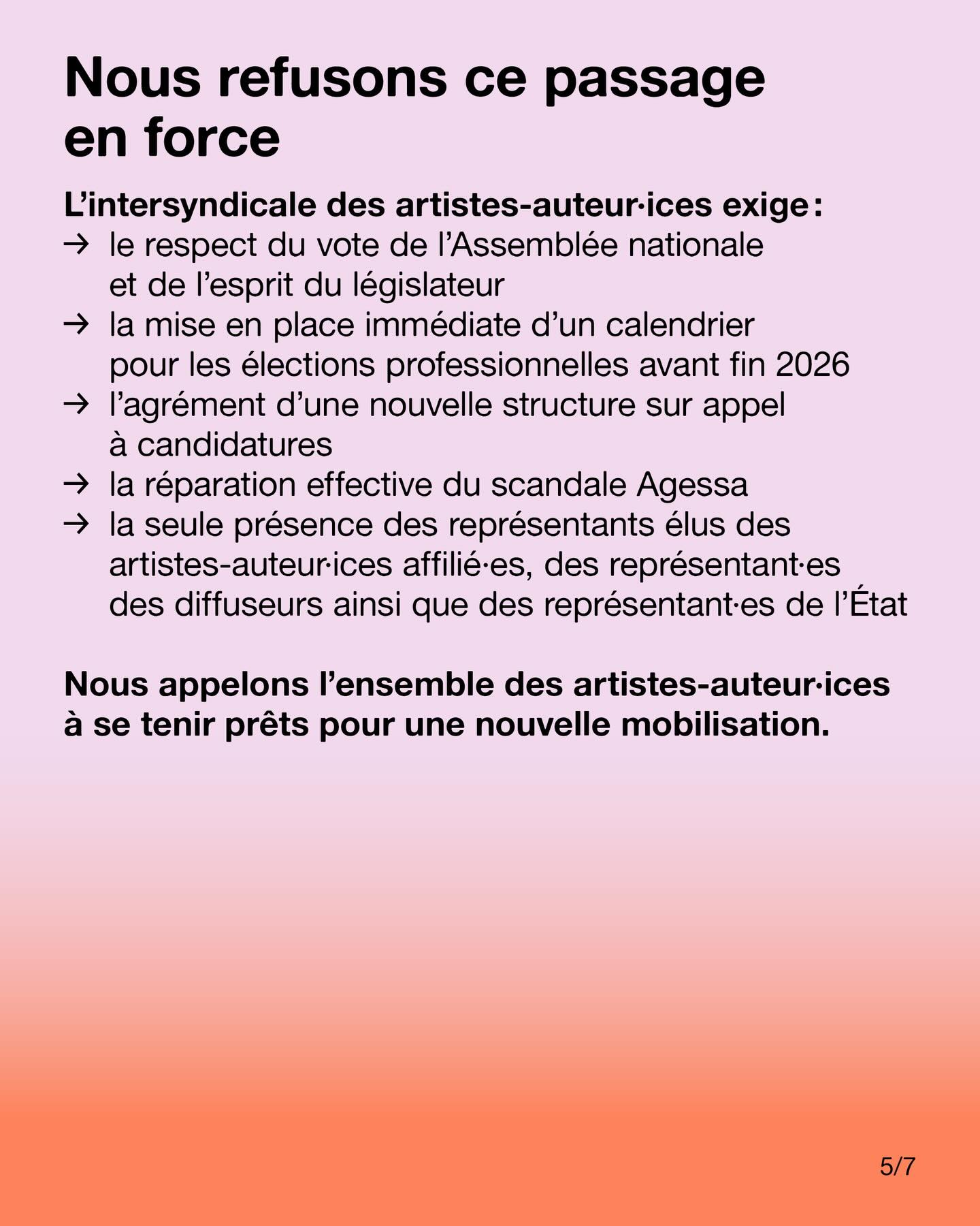 Nous appelons l’ensemble des artistes-auteur·ices à se tenir prêts pour une nouvelle mobilisation.